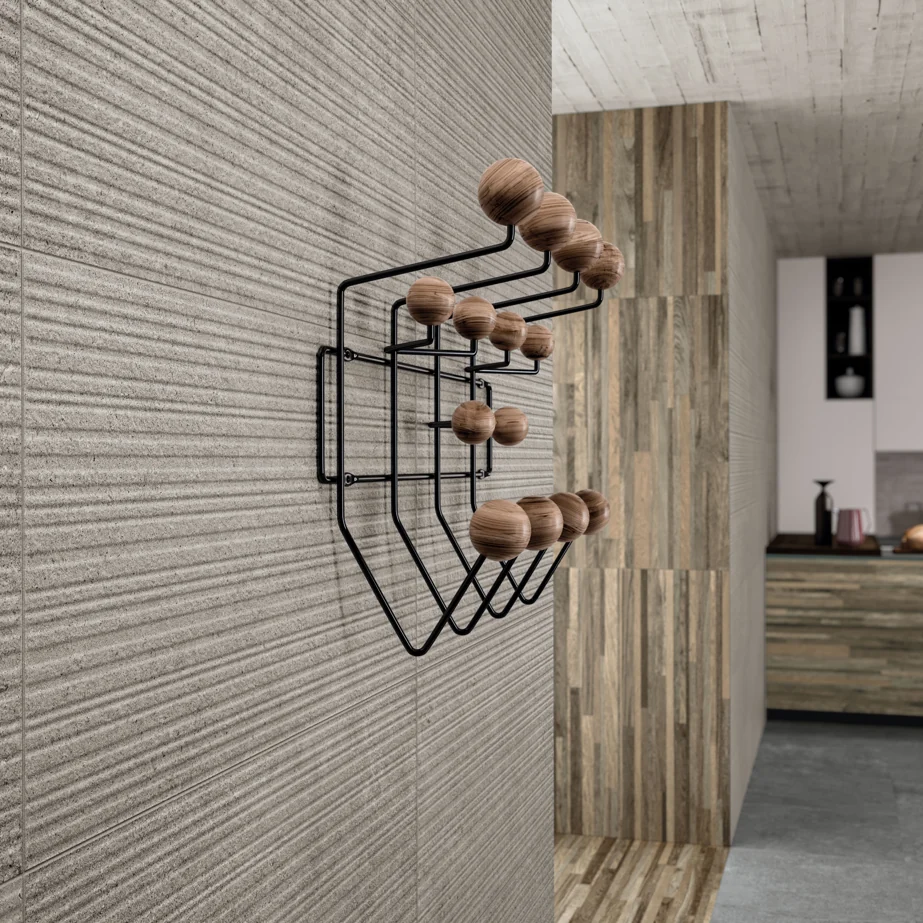 Atelier by Landmark introduces a new dimension to Veneer World with its sophisticated three-dimensional surface design. Thin lines of varying thicknesses, shapes and dimensions create a harmonious interplay of textures, perfect for elevating modern indoor and outdoor settings with a touch of creative elegance.